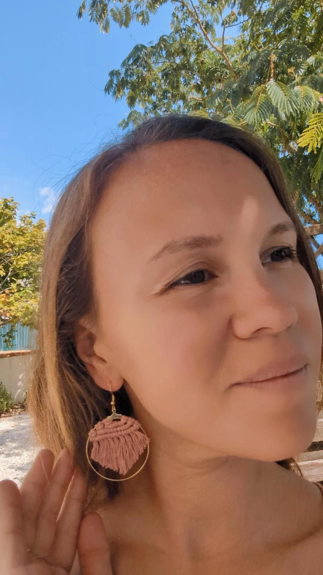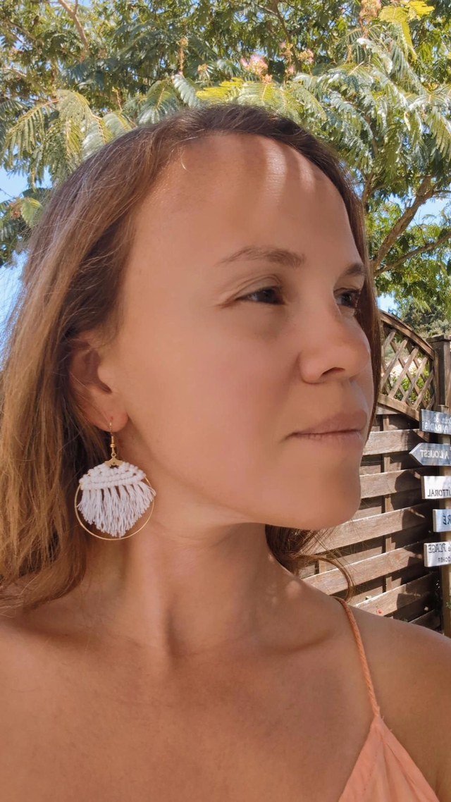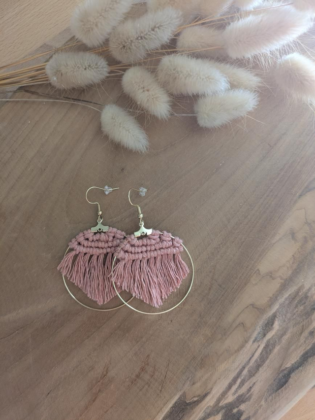 Boucles d’oreilles créoles en macramé – faites à la main avec soin